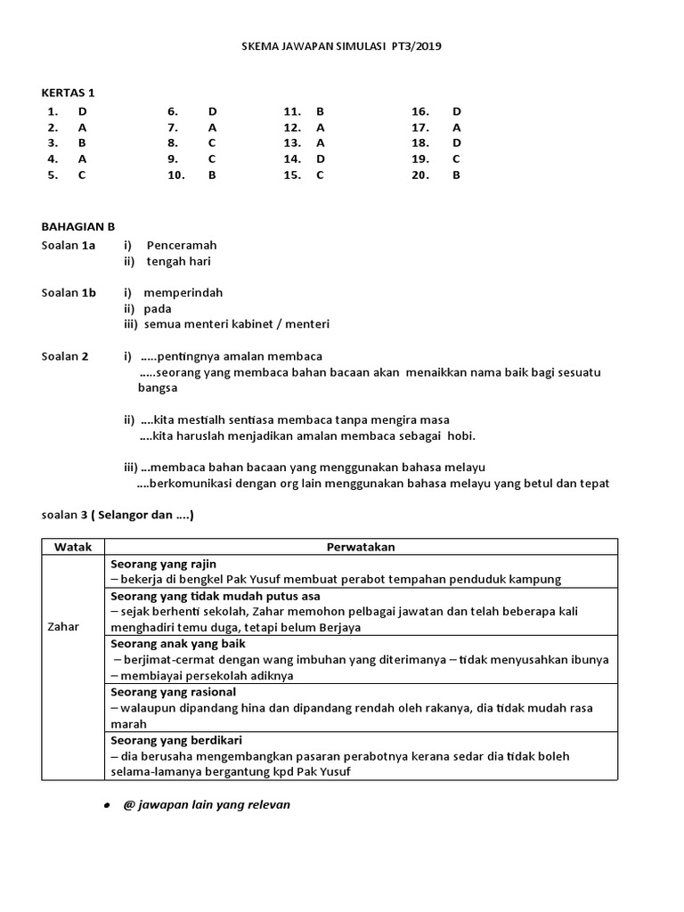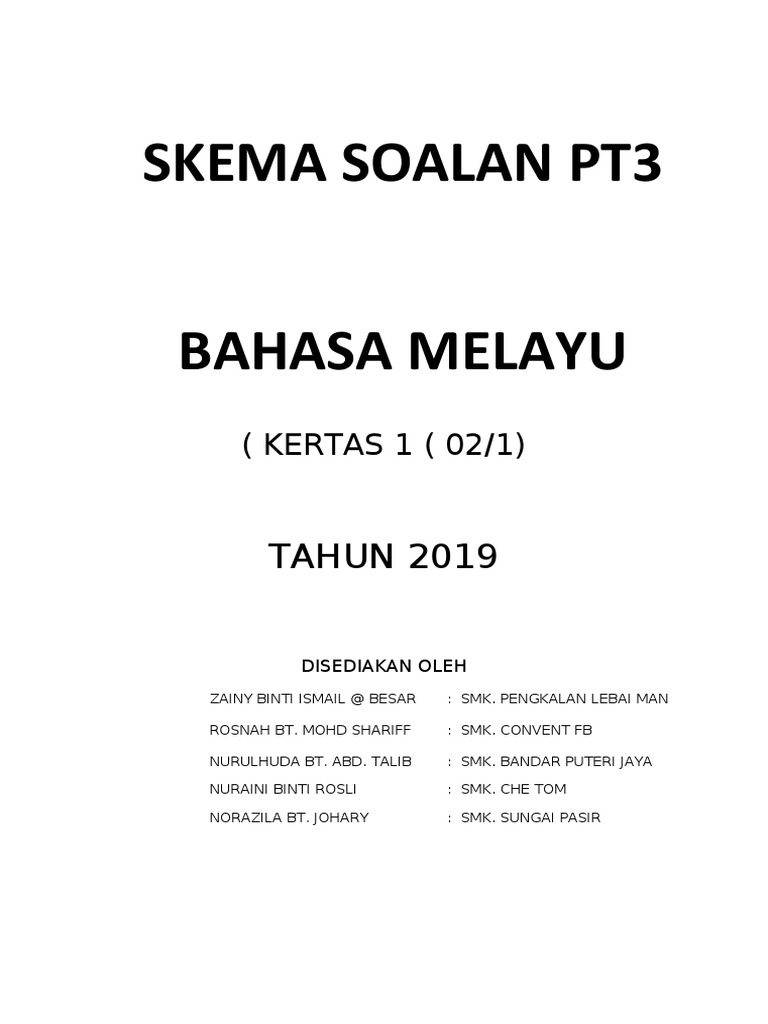 Bahasa Melayu Pt3 2019 Soalan Dan Skema Jawapan